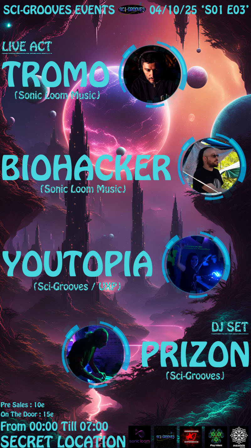 Embracing the mysterious, atmospheric, experimental and nocturnal sound, we invite listeners on a journey beyond the usual boundaries of sound. With each note, we aim to convey our dedication and passion for electronic sound. Welcome to Sci-Grooves, where the dark magic of music comes alive.